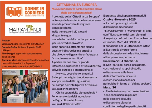 FONDACA collabora al progetto Bari-Europa. Cittadinanza europea, società della cittadinanza e forme della partecipazione, a cura dell’Associazione Donne in corriera di Bari.