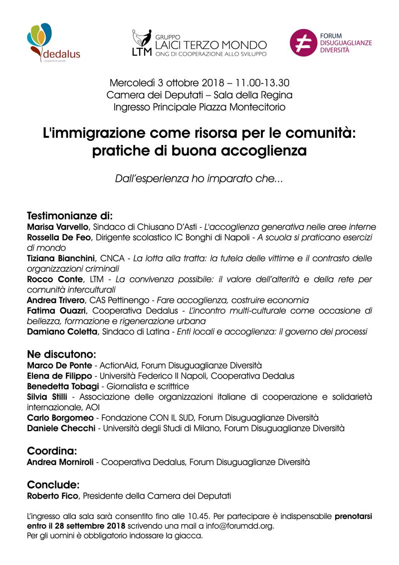 • 3 ottobre 2018 - L'immigrazione come risorsa per le comunità: pratiche di buona accoglienza